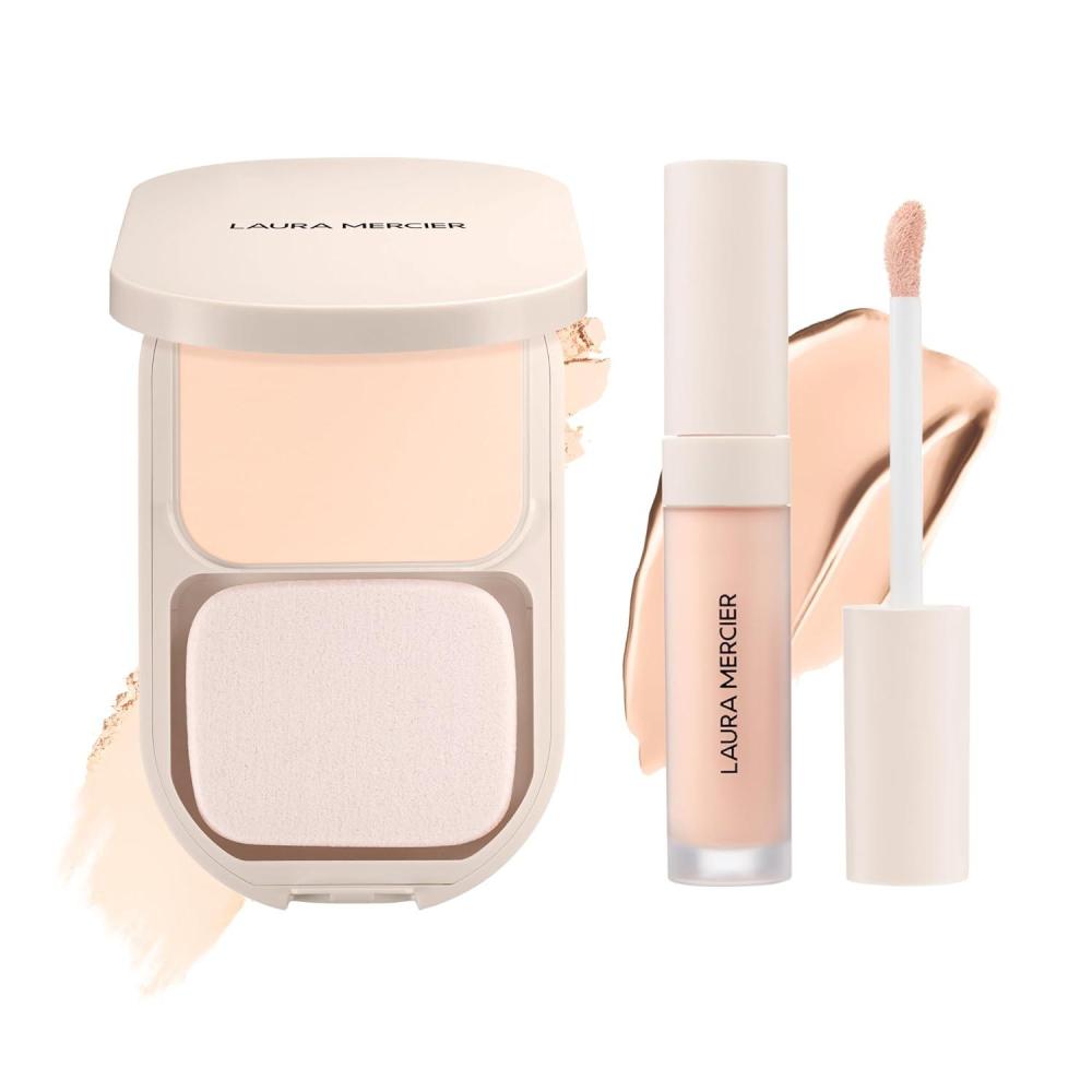 Laura Mercier Real Flawless Feather Matte Powder Foundation, Shade 0N Chantilly, and Real Flawless Weightless Perfecting Serum Concealer, Shade 0N1, Bundle
