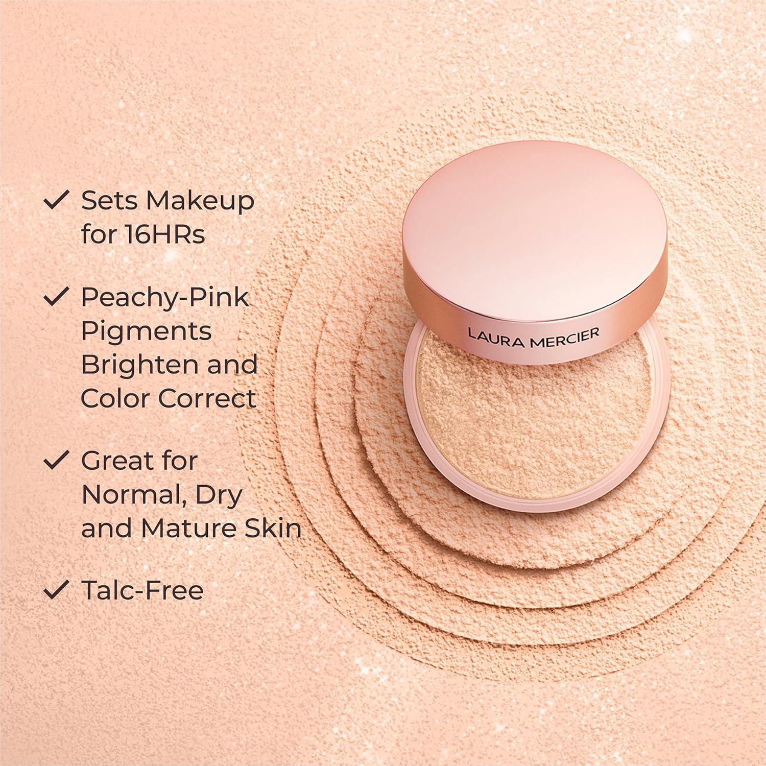 Laura Mercier Translucent Loose Talc-Free Setting Powder Ultra-Blur in Tone-Up Rose: Natural & Blurring Finish, Hyaluronic Acid Infused, For Enlivening Fair to Medium Skin Tones + Velour Puff Bundle